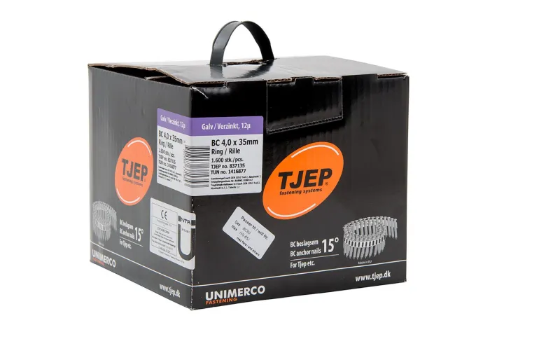 Ankkurinaula Ø4 mm rullalippaassa, kaltevuus 15° naulauslevyjen naulaamiseen. Sopii Tjep BC 60:lle ja MAX HN65J:lle.