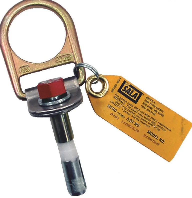 3M 2104565 ‑ankkuripiste. Ankkuri D-renkaalla betonille, 18 mm:n rei’ille, kääntyvällä D-renkaalla. Käytettäväksi seinään tai kattoon. Voidaan asentaa väliaikaiseksi tai pysyväksi ankkuriksi. Uudelleen käytettävä D-rengas. Turvallisen kytkennän ilmaisin.