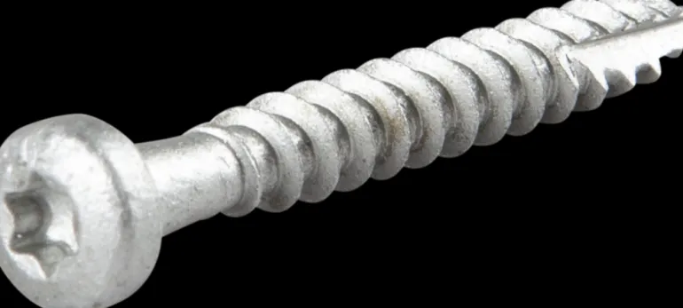 Ruuvi on karkaistua terästä, CorrSeal-pintakäsittely ja TX20-kanta. Ruuvin kärjessä on jyrsinura, joka pienentää ruuvausmomenttia kovissa materiaaleissa.