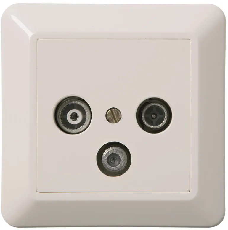 Satelliittipistorasia, jossa on radio-/TV-lähtö. Pistorasia on 3 dB:n pääterasia, eikä sitä voi kytkeä sarjaan.
