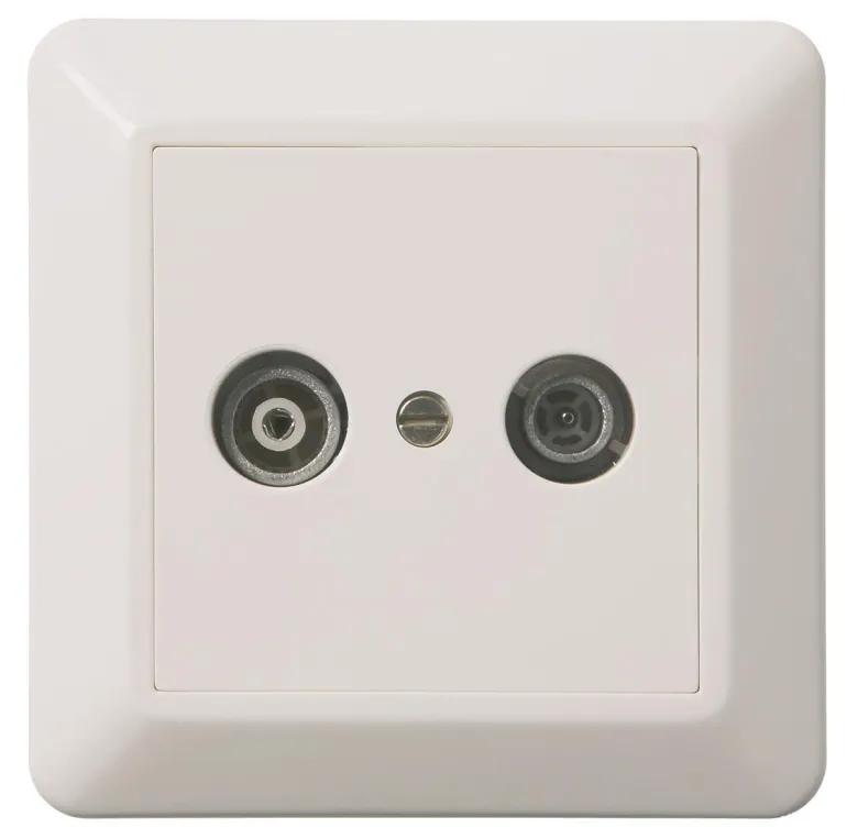 Täydellinen radio-/TV-pistorasia liittimineen. Antennipistorasia on tarkoitettu sarjaankytkettäviin verkkoihin.