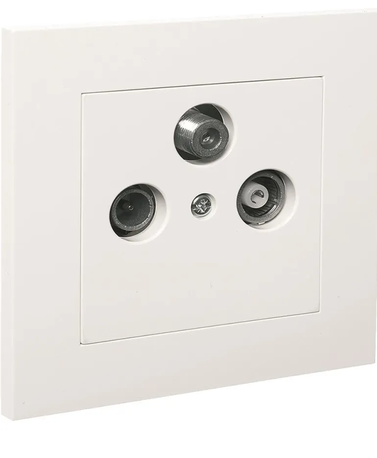 Satelliittipistorasia, jossa on radio-/TV-lähtö. Pistorasia on 3 dB:n pääterasia, eikä sitä voi kytkeä sarjaan. Satelliittilähdössä on F-liitäntä. Halogeenittomasta kestomuovista valmistettu keskiölevy ja kehys.