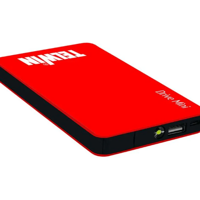 Pienikokoinen 12 V apukäynnistin moottoripyörien, autojen, matkailuatojen, veneiden jne. käynnistämiseen. 2,1 A USB- ja mikro-USB-liitäntä ja LED-valo.