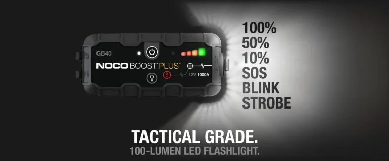 Noco GB40 Boost Plus on kannettava ja ladattava litiumioni-boosteri 12 V lyijyakuille. Käynnistysvirta 1000 A. Varustettu patentoidulla ULTRASAFE®-teknologialla, joka tarjoaa kipinöimättömät liitännät ja suojan käänteistä napaisuutta vastaan. Sisältää myös powerbank-toiminnon, jonka avulla voit ladata esimerkiksi matkapuhelimia ja tabletteja sisäänrakennetun USB-portin kautta.