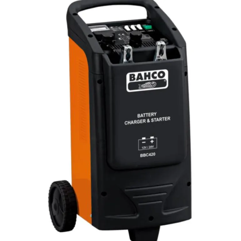 Bahco BBC420 on 12 V:n apukäynnistin, jossa sisäänrakennettu akkulaturi, ajoneuvoille, joissa on 12 tai 24 V:n sähköjärjestelmä. Pyörät helpottavat liikuttamista ja laite on suojattu ylikuormitukselta ja napojen virheelliseltä kytkemiseltä. Ladataan 230 V:n verkkovirralla. Muista ladata akku aivan täyteen ennen kuin käytät laitetta apukäynnistimenä. Apukäynnistimen mitat ovat 330 x 360 x 650 mm (P x L x K) ja se painaa 18 kg. CA = 400 A.