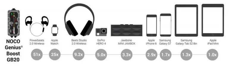 GB20 on kompakti ja kannettava lithium-ioni akku 12 V:n lyijyakuille. Apukäynnistintä on helppo kevyen ja käytännöllisen muotoilun ansiosta.