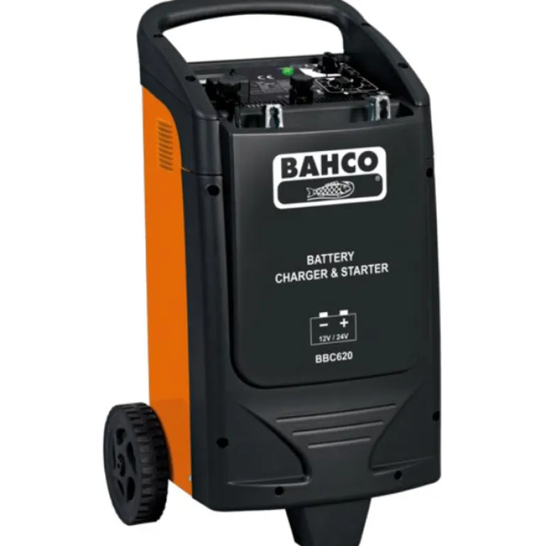 Bahco BBC620 on 12 V:n apukäynnistin, jossa sisäänrakennettu akkulaturi, ajoneuvoille, joissa on 12 tai 24 V:n sähköjärjestelmä. Pyörät helpottavat liikuttamista ja laite on suojattu ylikuormitukselta ja napojen virheelliseltä kytkemiseltä. Ladataan 230 V:n verkkovirralla. Muista ladata akku aivan täyteen ennen kuin käytät laitetta apukäynnistimenä. Mitat 325 x 465 x 730 mm (P x L x K), paino 26 kg. CA = 570 A.