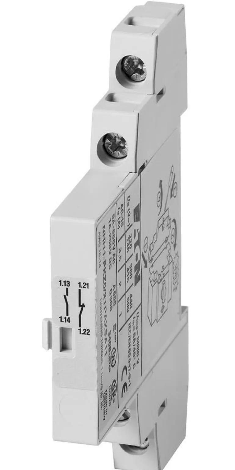 Apukosketin, joka voidaan asentaa moottorin katkaisijan, muuntajan katkaisijan ja käynnistinyhdistelmien moottorin suojakytkimen oikealle puolelle.