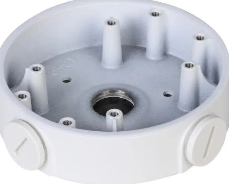 Dome-valvontakameroiden asennusalusta. Helpottaa asennusta. Liitännät on piilotettu ja suojattu sokkeliin, alumiinia.