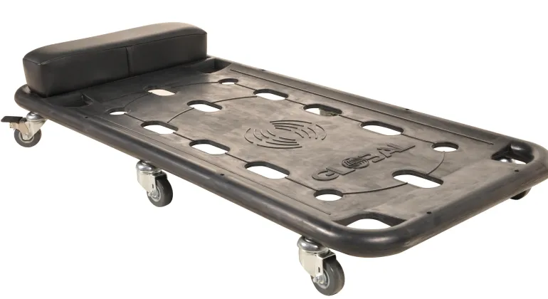 Käytännöllinen apuväline auton alla työskentelyyn. Vankassa teräsrungossa on öljynkestävä kumipinnoite.