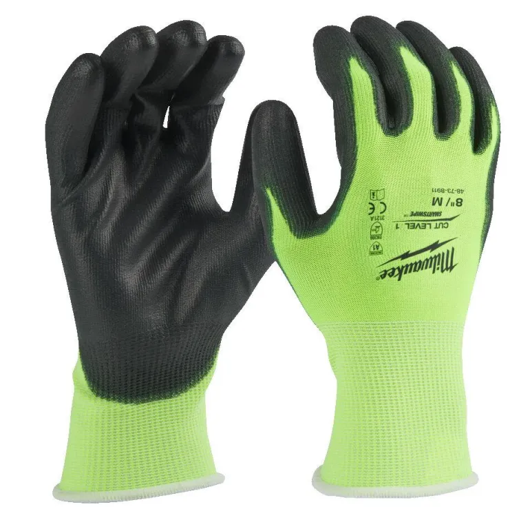 Milwaukee 4932479919 on High Visibility-asennuskäsine viiltosuojalla (taso 1/A), joka on valmistettu fluoresentista materiaalista antaen erinomaista näkyvyyttä heikon valaistuksen ympäristössä. Kevyet ja ohuet käsineet PU-upotetulla kämmenellä. Muotoiltu hyvää sormituntumaa ja käyttömukavuutta ajatellen. Soveltuu erinomaisesti materiaalin käsittelyyn, kaapelien kuorintaan, putkien kierteitykseen ja sahaukseen/katkaisuun. Smartswipe-kosketusominaisuus kämmenessä ja sormenpäissä, joka mahdollistaa kosketusnäyttöjen käytön käsineet päällä. EU-sertifioitu viiltosuojaus: EN ISO 21420, EN388:2016 (3121A).