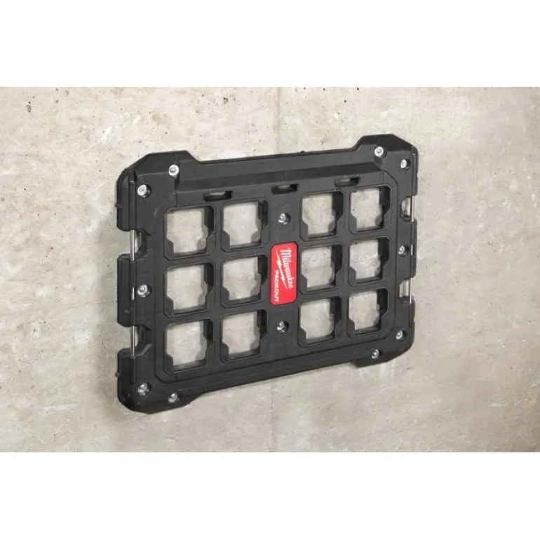 Milwaukee 4932471638 Packout on seinään tai lattiaan asennettava kiinnityslevy. Levyn painokapasiteetti on 45 kg lattiaan asennettuna ja 22 kg seinään asennettuna. 550 x 390 mm (P x L).