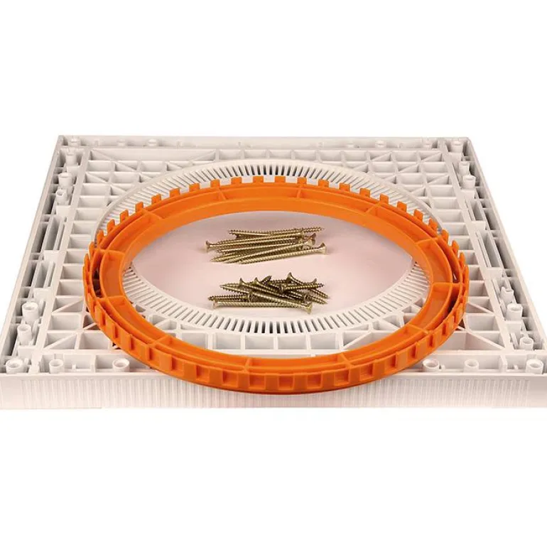 Asennuslevy puurakenteisiin kiinnitettävälle lattiakaivolle. Sopii sekä muovimatolle että klinkkerille. Sopii kaikkien valmistajien muovikaivojen kanssa, joiden halkaisija on 220 mm.