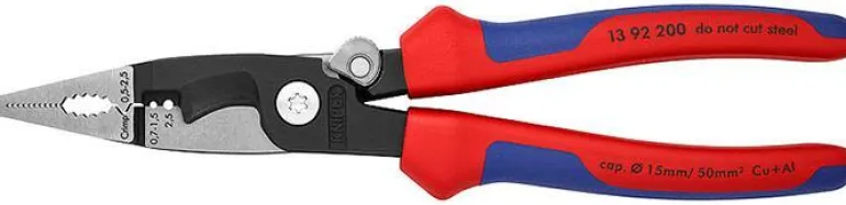 - Tarkkuusleikkausterillä varustetut kaapelileikkurit (induktiokarkaistut) kupari- ja alumiinikaapeleille jopa 5 x 2,5 mm²/Ø 15 mm