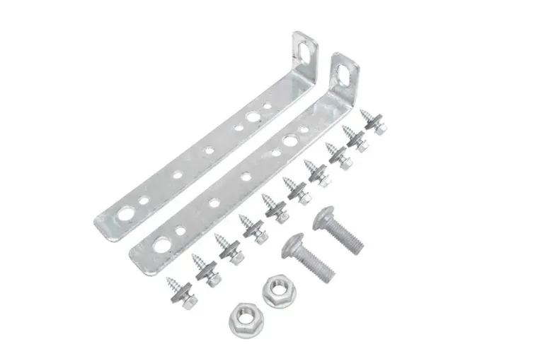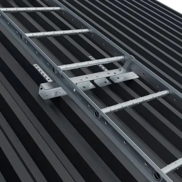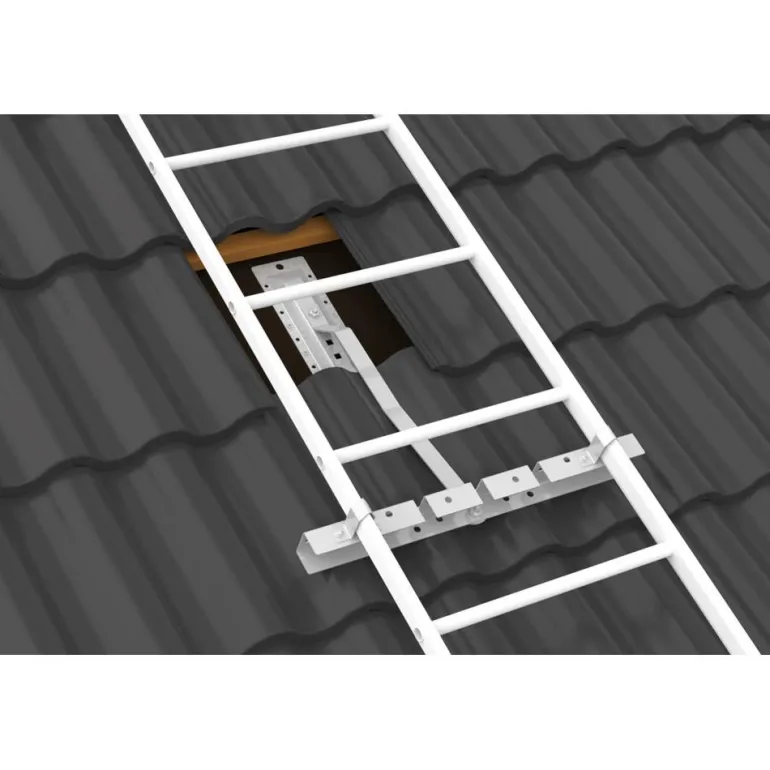 Asennussarja teräksisille seinä- ja kattotikkaille. Kun asennat teräskatto- ja seinätikkaita katolle, tarvitset asennuspalkin sekä kiinnityssarjan. Kiinnityssarja valitaan katon materiaalin perusteella. Kiinnikkeet ja ruuvit teräksisten tikkaiden kiinnittämiseen palkkiin sisältyvät asennuspalkkisarjaan.