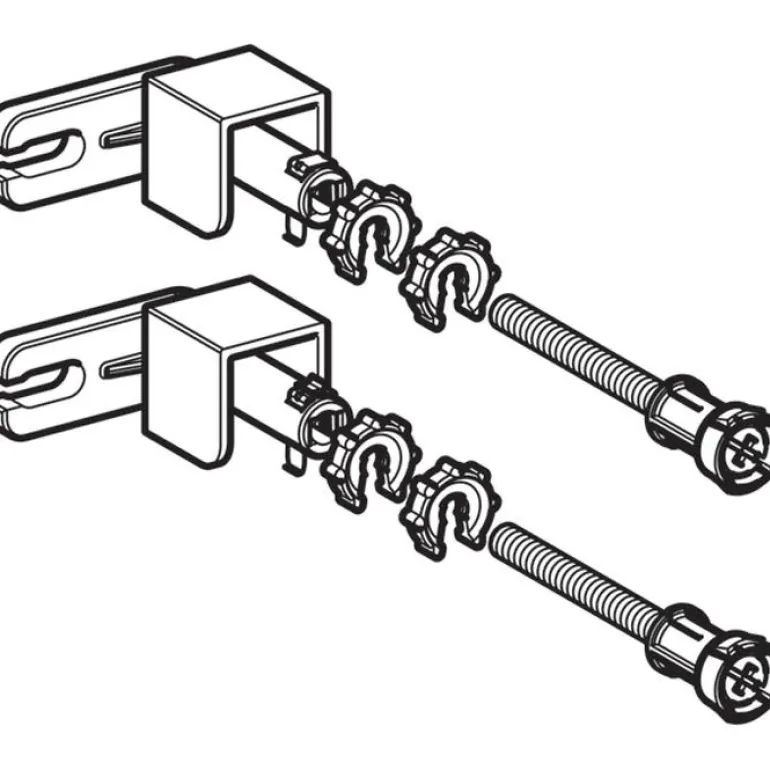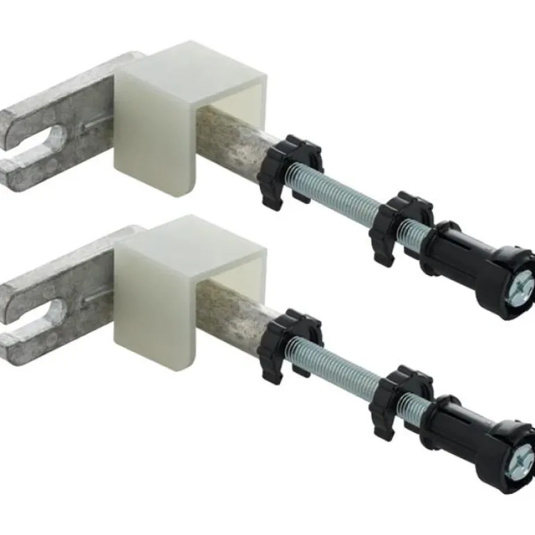 Asennussarja Duofix-WC-kiinnikkeelle. Syvyyttä voidaan säätää portaattomasti edestä (nopealla säädöllä), 360° kääntyvä seinäkiinnike ja sinkitty kierretanko M10. Toimitetaan 2 kpl:n pakkauksessa.