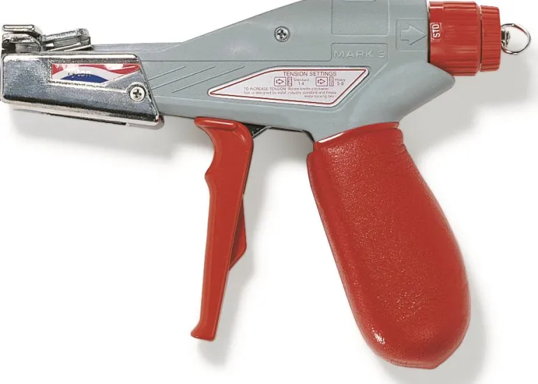 Ergonominen asennustyökalu MBT-sarjan teräsjohdinsiteille. Työkalu katkaisee johdinsiteen kun valittu sidontakireys on saavutettu.