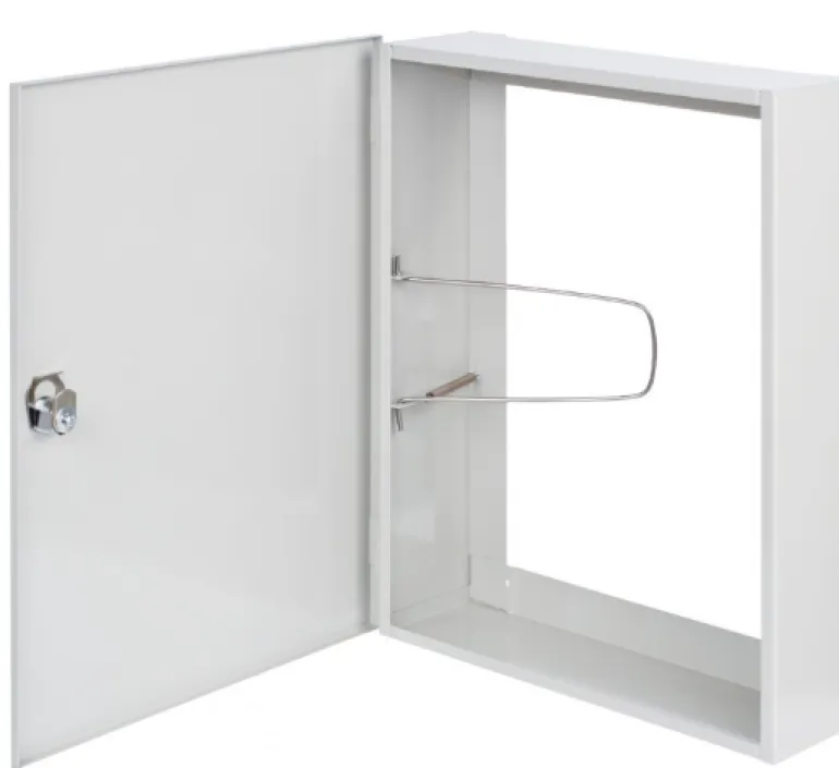 Asiakirja- ja piirustuskaappi, jossa voi säilyttää huoltopiirustuksia, suuntapiirustuksia ja muita tietoja ohjauskeskuksen läheisyydessä SSF 130:8 -standardin mukaisesti. A4-kokoisille piirustuksille ja dokumenteille.