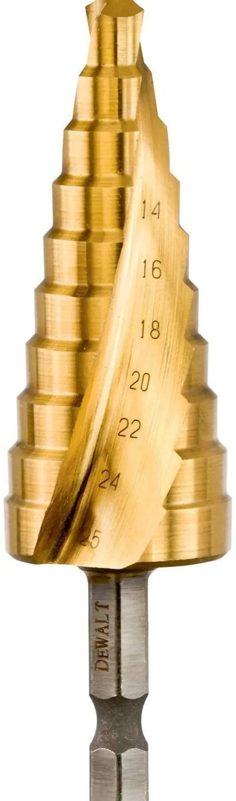 Askelspora metallin poraamiseen. Poranterässä on erikoiskärki, joka lisää nopeutta ja pidentää käyttöikää, sekä laserkaiverretut selkeät mittamerkinnät.