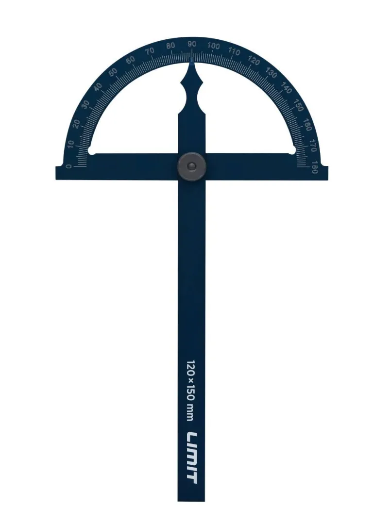 Mattakromattu alumiininen astelevy. Levyssä on asteikko 0–180°. Lukkoruuvi levyn kiinnittämiseksi mihin tahansa kulmaan.