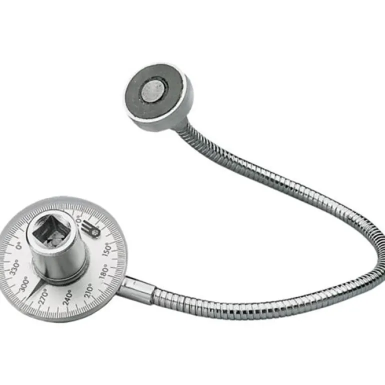 Magneettinokan 1/2-tuumainen astelevy, jossa on kiristysavaimet ja 2 asteen välein merkitty asteikko.