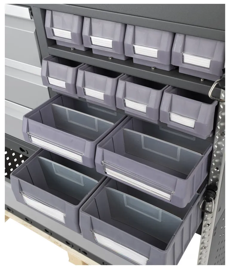PELA 538174-autohyllystössä on 3 kuulalaakeroitua ulosvedettävää laatikkoa, 12 säilytyslaatikkoa 3 eri koossa sekä alhaalla puoliavoin säilytystila, jossa on avattava reuna. Yläosa toimii hyllytasona, jossa on jakaja keskellä ja reunat. Päädyn kahta asiakirjalokeroa voidaan käyttää säilytystilana esim. käynnistys- ja hitsauskaapeleille. Hyllyssä on myös kiskot kiinnitysrenkailla erilaisten esineiden tai tarvikkeiden kiinnittämiseen eri tasoissa. Perforoidut päädyt ripustuskoukkuja varten jne.