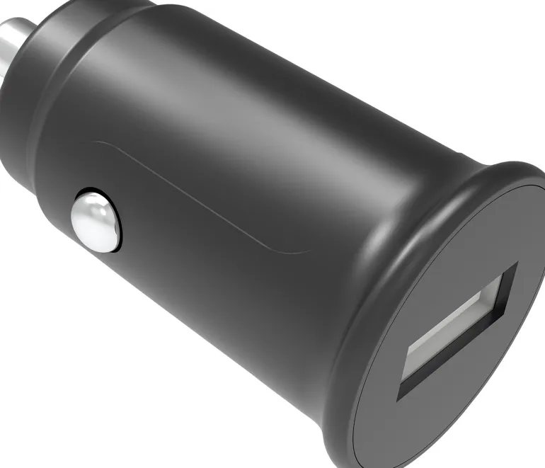 Latauspistoke autoon. Latauspistokkeessa on USB-lähtö, joka tuottaa jopa 2.