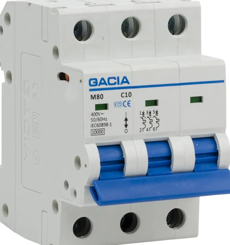 Gacia 4021163072 3-napainen 25 A:n automaattisulake, joka soveltuu vakiokeskuksille/vakiokoteloille ja suojaa henkilöitä ja omaisuutta. Automaattisulake on varustettu tyypin C mikrokytkimellä ja 10 kA:n nimellisellä oikosulkukapasiteetilla. Kiinnike mahdollistaa yksittäisten mikrokytkimien asentamisen tai irrottamisen, vaikka vaihekisko olisi asennettu.