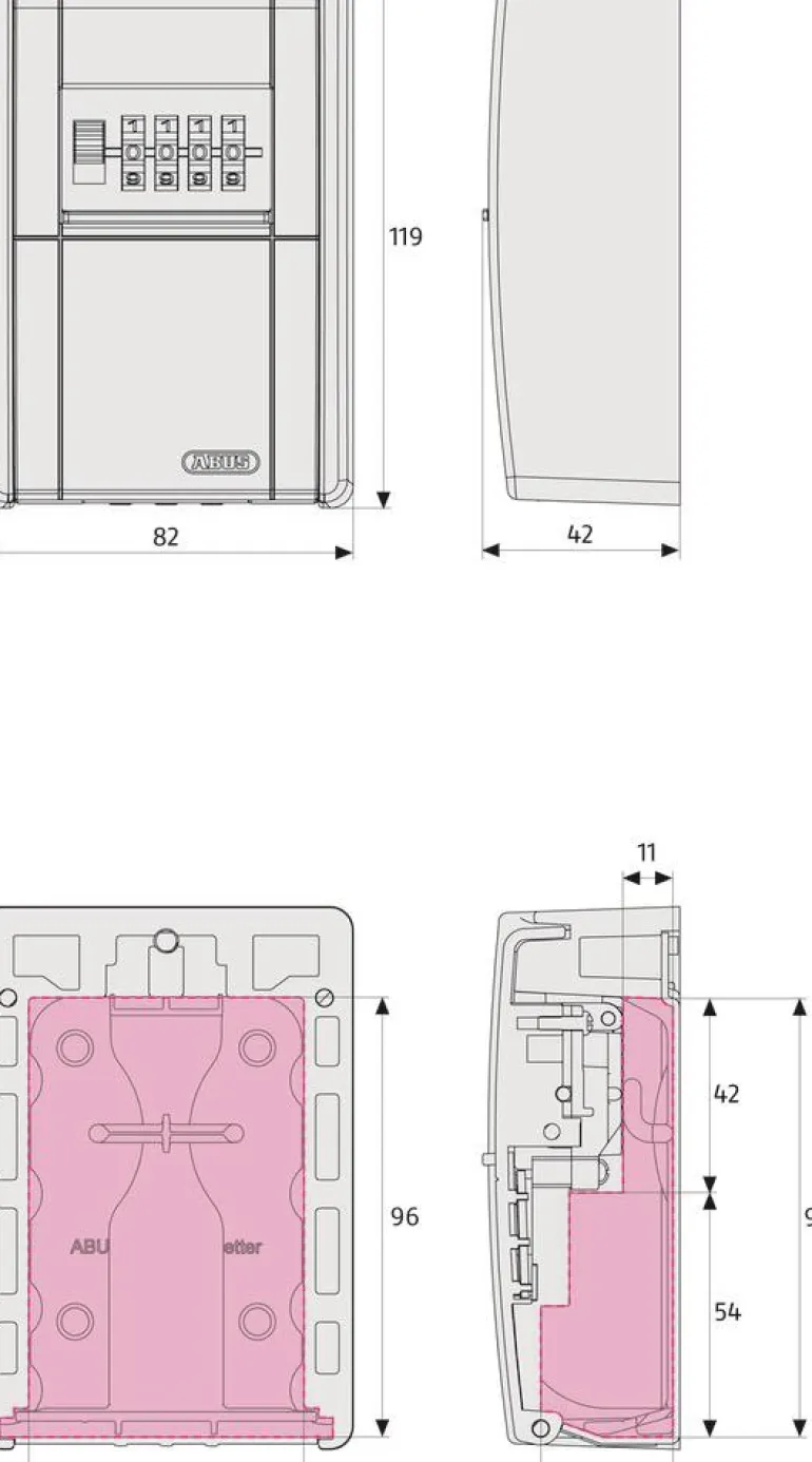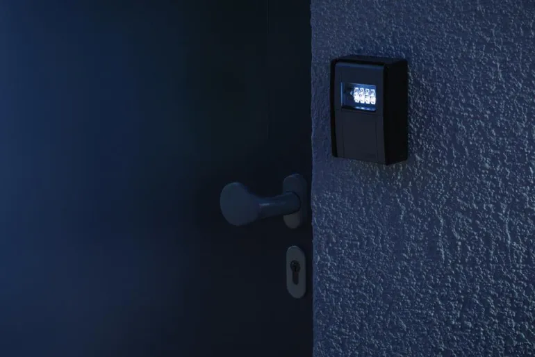 ABUS 787 LED on avainkotelo, jossa on LED-valaistus ja varustettu yhdistelmälukolla, jossa on 4 rullaa nelinumeroiselle koodille, joka valitaan vapaasti. Valaistut numerorullat parantavat luettavuutta hämärässä. Nopea ja helppo pääsy monille eri käyttäjille (esim. käsityöläiset, palveluhenkilöt, kesävieraat). Tilaa 14 muovikortille tai 20 avaimelle.