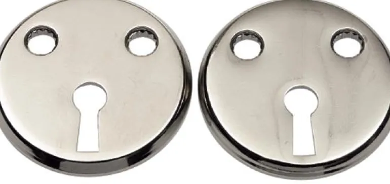 Messinkinen avainlevy läpiasennettavaksi pidikelukkoon. 38-60 mm vahvuisiin oviin.