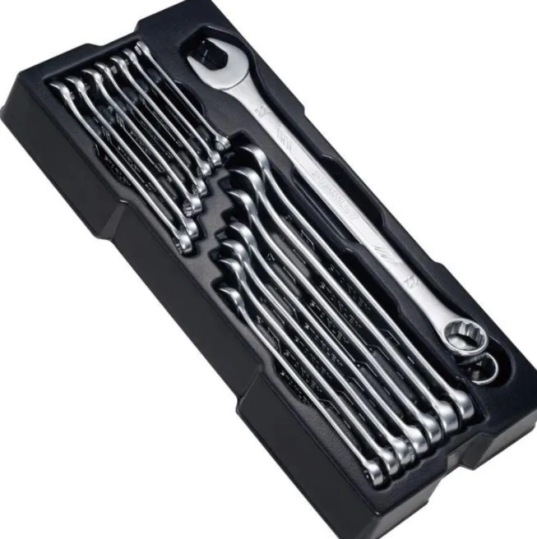 16-osainen avainsarja. Työkalut ovat osa Transmodul-järjestelmää, moduuleista koostuvaa varastointijärjestelmää mekaanikoille, ja ne on suunniteltu käytettäväksi Transmodul System -työkaluvaunujen kanssa.
