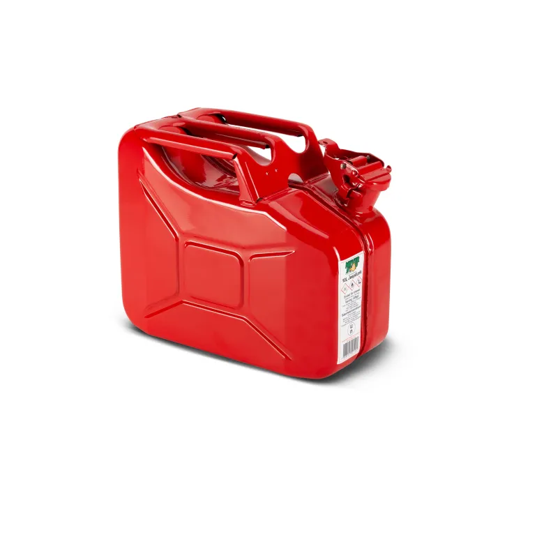 Polttoainekanisteri vahvaa teräslevyä. Maalattu. Punainen. Ruostesuojakäsitelty sisältä ja ulkoa. Lukitustappi.