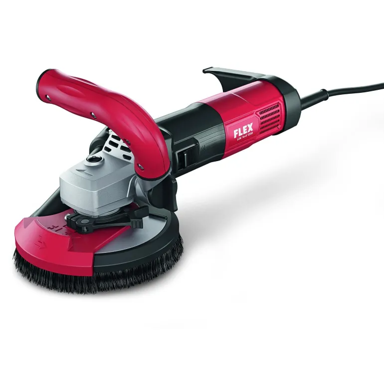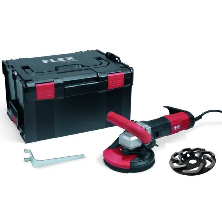 Kompakti betonihiomakone kääntyvällä reunaosalla ja säädettävällä nopeudella. 1600 W. Mikroprosessoriohjattu pehmeä käynnistys, uudelleenkäynnistymissuoja sähkökatkon yhteydessä, ylikuumenemissuoja, ylikuormitussuoja ja elektroninen tehonsäätö. Tehokas 1600 W:n moottori. Tehokas pölynpoisto suojaa haitalliselta pölyltä ja pitää betoniurat avoimina, mikä vähentää hiomakupin kulumista. Varustettu takapotkun estolla, joka sammuttaa moottorin laipan jumittuessa. Pölykotelo, jossa on harjareunus ja kääntyvä reunaosa, jonka avulla ulotut seinään asti. Syvyyssäätö erilaisille hiontakulhoille parhaan pölynpoiston mahdollistamiseksi. Tärinävaimennettu ergonomisesti muotoiltu kahva portaattomalla säädöllä koneen optimaaliseen käsittelyyn. Kiinteää letkuliitäntää varten. Vakiona FLEX Clip -liitäntä Ø 32 mm:n pikakiinnitykselle. Karalukitus, joka on varustettu vahinkopainalluksen estolla. Säädettävä nopeus parempaa hallintaa varten viimeistelyssä pienemmällä paineella, esim. reunoilla, ja pintojen viimeistelyn aikana. Ihanteellinen kattojen ja seinien hiontaan. Työskentely on tehokasta ja taloudellista hiomakupin optimaalisen ohjattavuuden ansiosta. Hiomakuppi Boomerang 125 mm on optimoitu kovien rakennusmateriaalien hiontaan, esim. betoni, kova kipsi, betonijäyste, kova tasoite ja reikäbetoni.