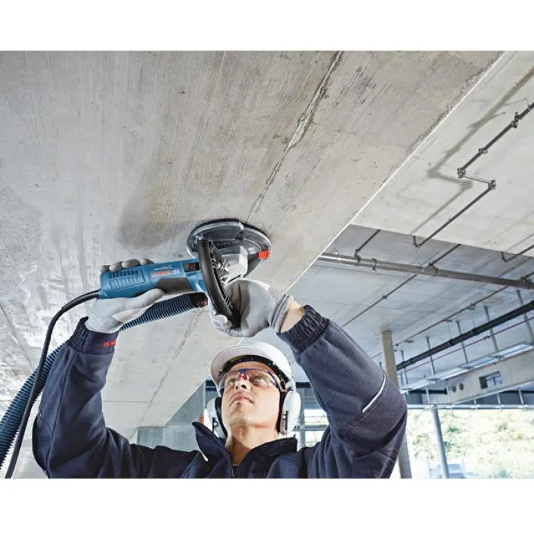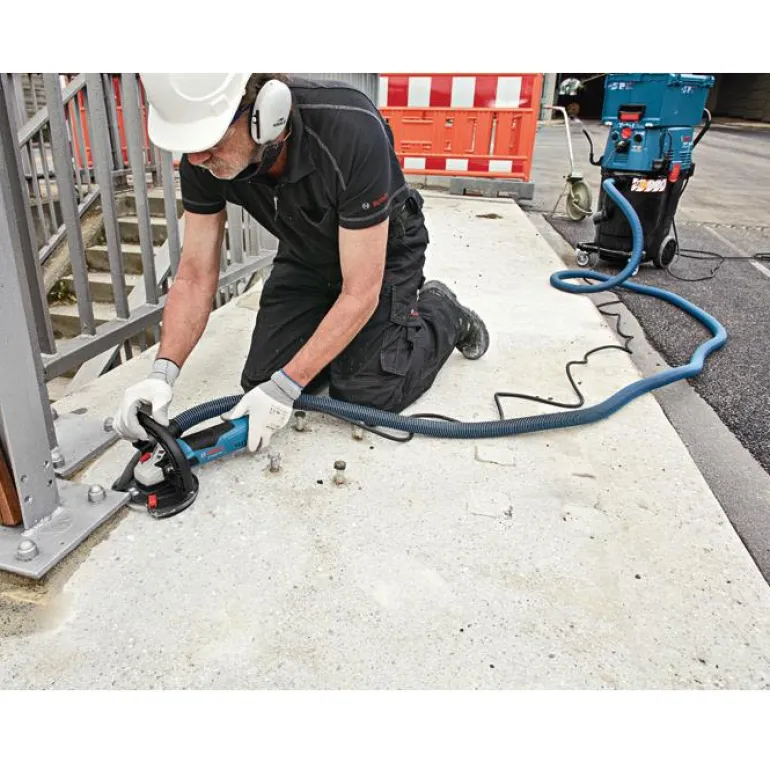 Betonihiomakone 1 500 W, laikan halkaisija 125 mm. Betonin epätasaisuuksien tehokkaaseen karkeahiontaan. Liikkuvan suojaelementin ansiosta sopii erinomaisesti myös hiontaan reunoja myöten. Varustettuna tehokkaalla imurilla pölytöntä hiomista varten.