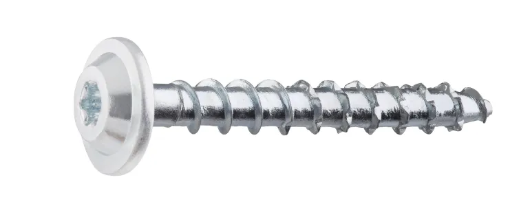 Valkoinen betoniruuvi Ø5 mm nopeaa ja helppoa betoniin asentamista varten. Tulppaa ei tarvita, ruuvataan suoraan esiporattuun reikään, käytä halkaisijaltaan 4,0 mm:n betoniporanterää.