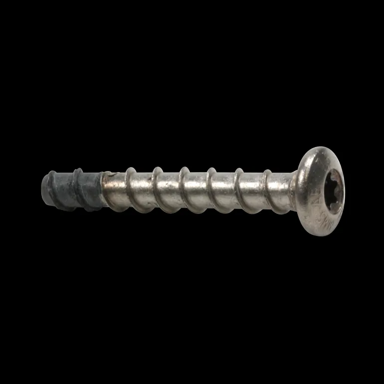 MMS-P -betoniruuvi kuulapäällä ja TX-uralla. Ruostumaton haponkestävä teräs A5, 1.4571 ulkokäyttöön.