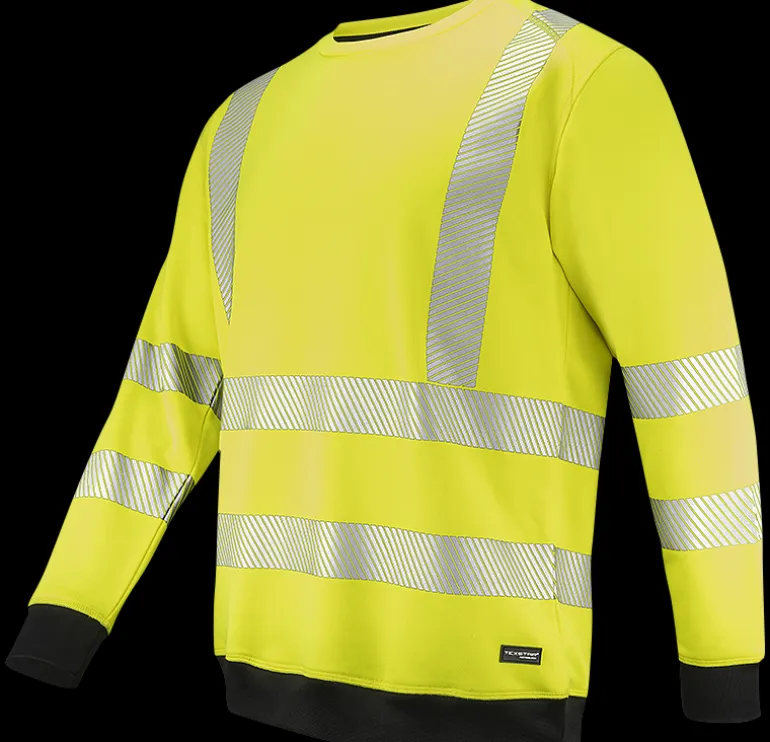 Texstar SW19 on mukava huomiovärillinen collegepusero, jossa pyöreä kaula-aukko. Raidalliset painetut heijastimet ja mustat resorit. Sopii esim. kuljetus-, teollisuus-, rakennus- ja henkilöstövuokrausaloille.