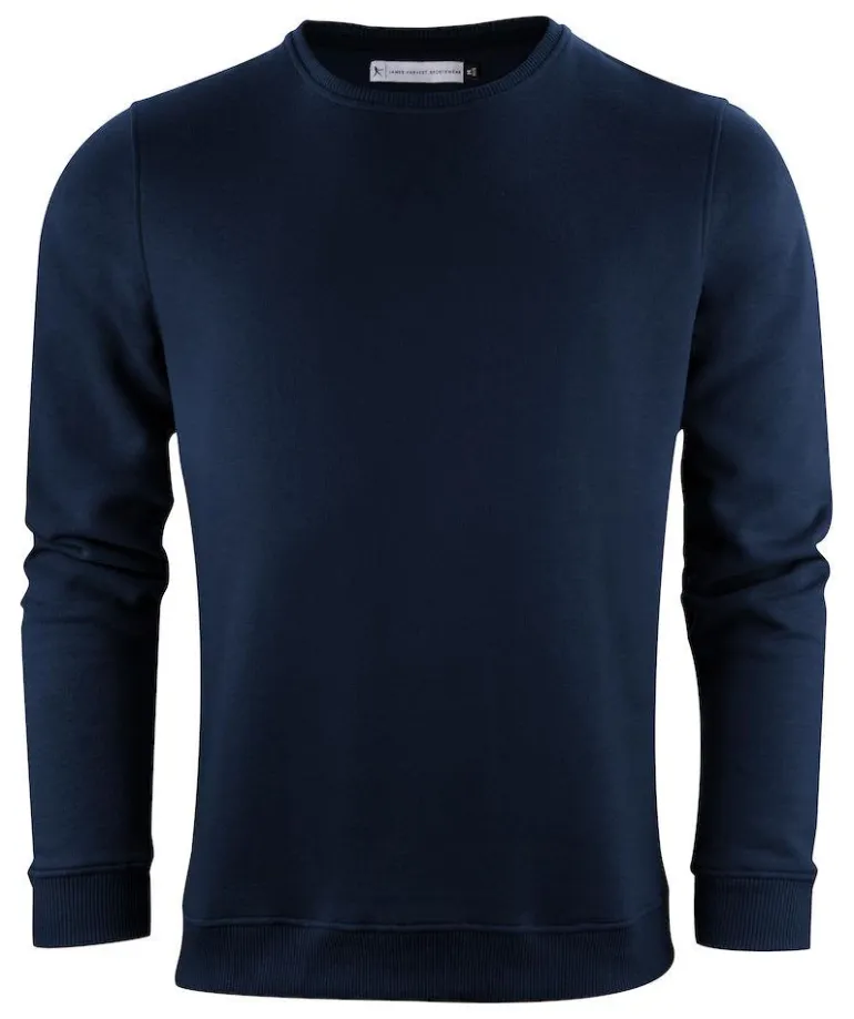 James Harvest Alder Heights on luomupuuvillasta valmistettu collegepaita pyöreällä kaula-aukolla ja harjatulla sisäpuolella.