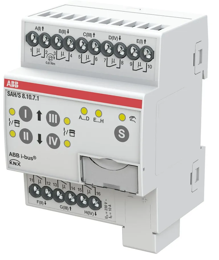 Kompaktissa combi-kytkinyksikössä on 8, 16 tai 24 itsenäistä lähtöä (ei sähkömekaanisesti kytketty). Lähtöjä voidaan käyttää yksittäin ABB i-bus KNX:n kautta sähkökuormien kytkemiseen tai pareittain 230 V AC:n kaihtimien tai markiisien ohjaamiseen. Laitteessa on manuaalinen ohjaus, joka voidaan myös deaktivoida. Manuaalisella käytöllä lähdöt voidaan ajaa manuaalisesti ja vaihdon tai ajon tila tulee näkyviin. Laite saa käyttövoimansa väyläjännitteestä eikä vaadi lisävirtalähdettä.