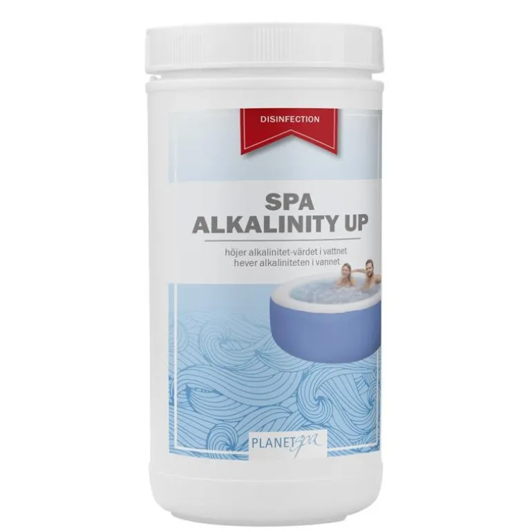 Planet Spa Alkalinity Up on desinfiointiaine (rakeet), jota käytetään emäksisyyden lisäämiseen ja pH-arvon vakauttamiseen. Pakkaus sisältää 1 kg rakeita.