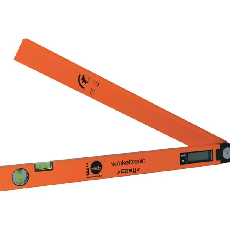 Nedo Winkeltronic Easy -astemittari, 600mm, digitaalinen näyttö. Winkeltronic on kevyt, ja siinä on helppolukuinen näyttö. Se on ihanteellinen apuväline rakennustyömaalla, sisustustöissä ja erkkereiden mittauksessa. Mittauskärjet taitetaan ulos ja niiden välinen kulma luetaan digitaaliselta näytöltä. Nopeaa ja helppoa!