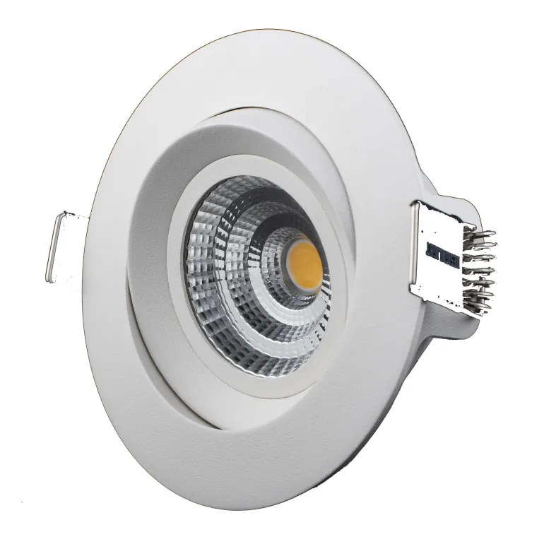 Kallistettava syvävirtausvalaisin, jonka valovirta värilämpötila järjestelmäteho on 7 W ja nimellisjännite 230 V. Asennus voidaan suorittaa suoraan eristystä vasten.