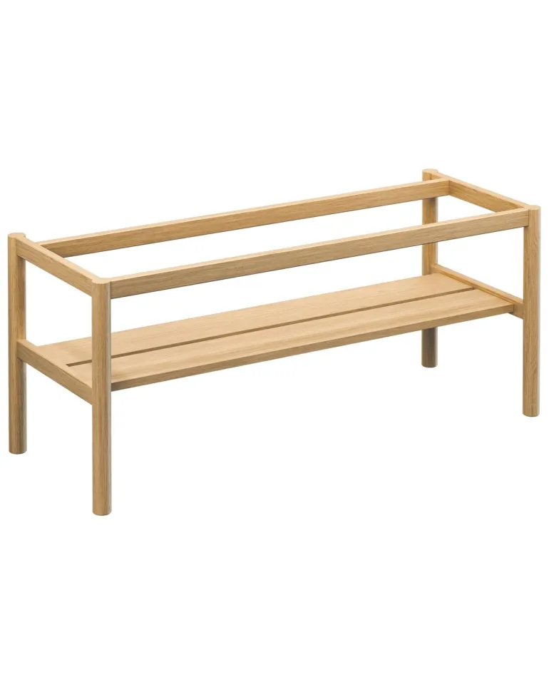 Vaaleasta massiivitammesta valmistettu tukikehys säilytystasolla Gustavsberg Ducentic-allaskaapille. Leveys 60 cm. Luotu Gustavsbergin 200-vuotisjuhlavuotta varten, käsityötaidon ja muotoilun perinteen juhlistamiseksi. Saatavana eri väreissä.