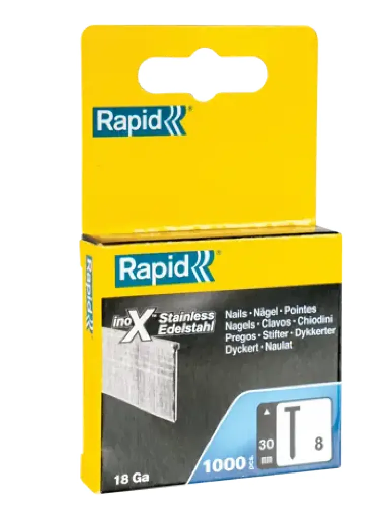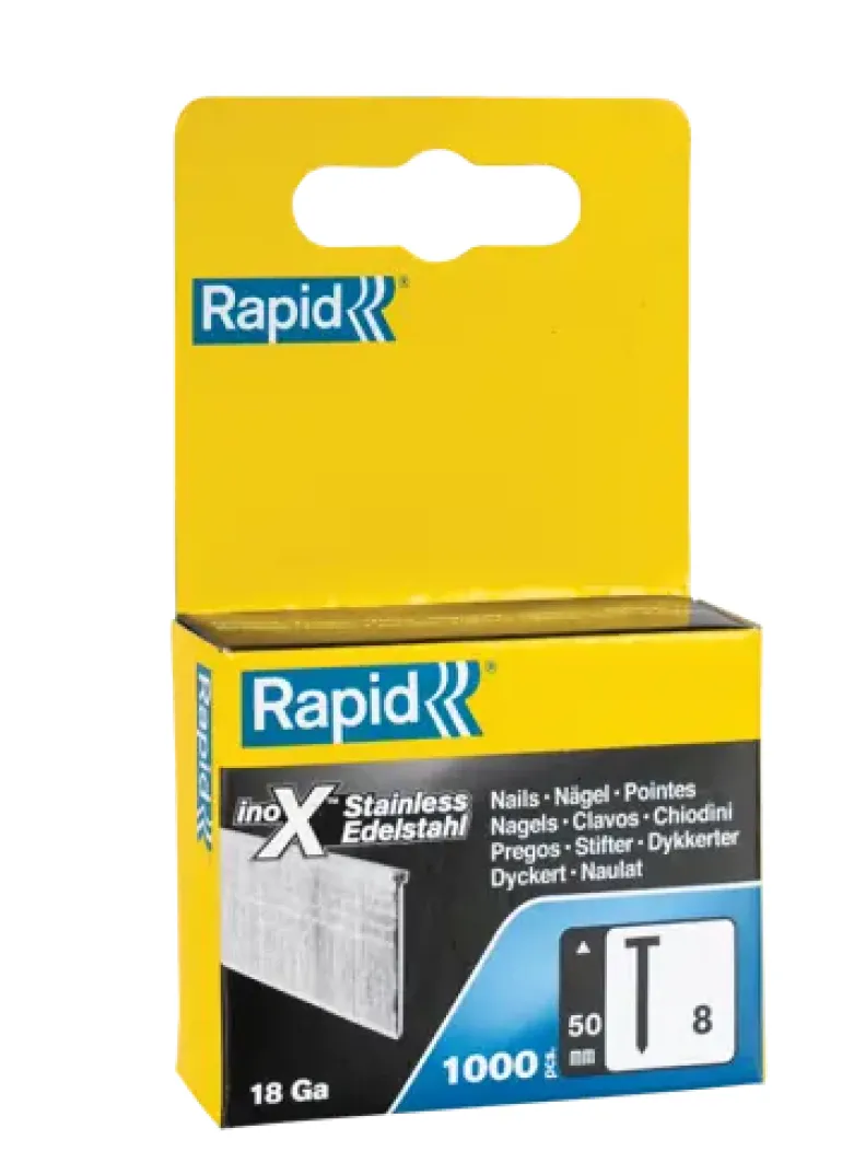 Rapid nro 8 on korkealaatuinen ruostumaton 50 mm dyckertnaula monipuoliseen käyttöön. Rapid nro 8 50 mm soveltuu erilaisiin käyttötarkoituksiin, kuten ohuiden listojen kiinnitykseen ja kehysten tekoon. Naulojen materiaali on ruostumatonta terästä ja ne on tarkkuusleikattu niin, että ne läpäisevät parhaalla mahdollisella tavalla. Erityisesti vaativiin ulko-olosuhteisiin.
