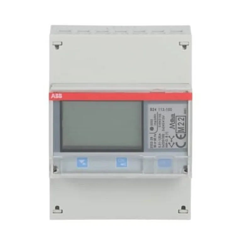 3-vaihe, 6 A, 400 VAC, virtamuuntajakytketty, tarkkuusluokka B (1), MID. Pulssi-/hälytyslähtö, max 40 VDC. Instrumenttiarvot: teho, jännite, virta, taajuus ja tehokerroin. 4 DIN moduulia. Käyttölämpötila -40…+70 °C. M-bus.