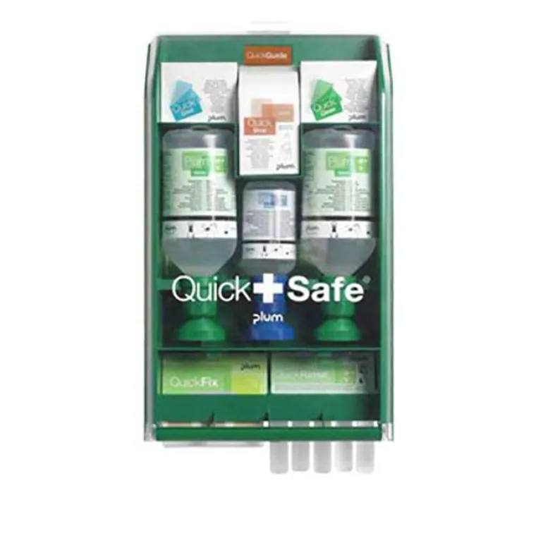 Plum QuickSafe Complete on ensiapuasema, joka on valmistettu iskunkestävästä muovista ja jossa on läpinäkyvä luukku.