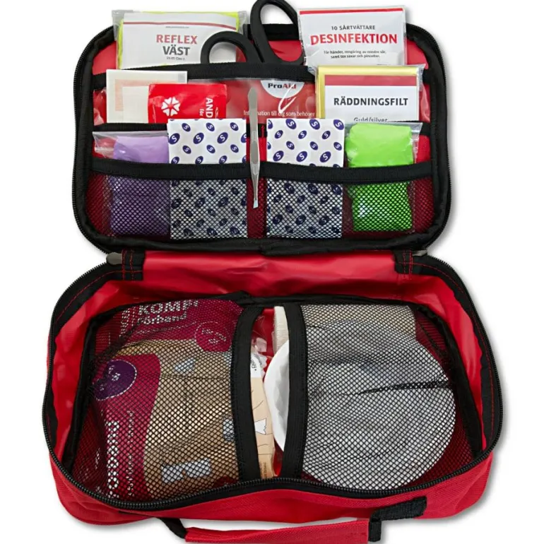 Ensiapulaukku joka on sopiva autoon. Ambulanssisairaanhoitajat ovat valinneet todella hyvät ensiapuvälineet akuutteja vammoja varten liikennetilanteissa.