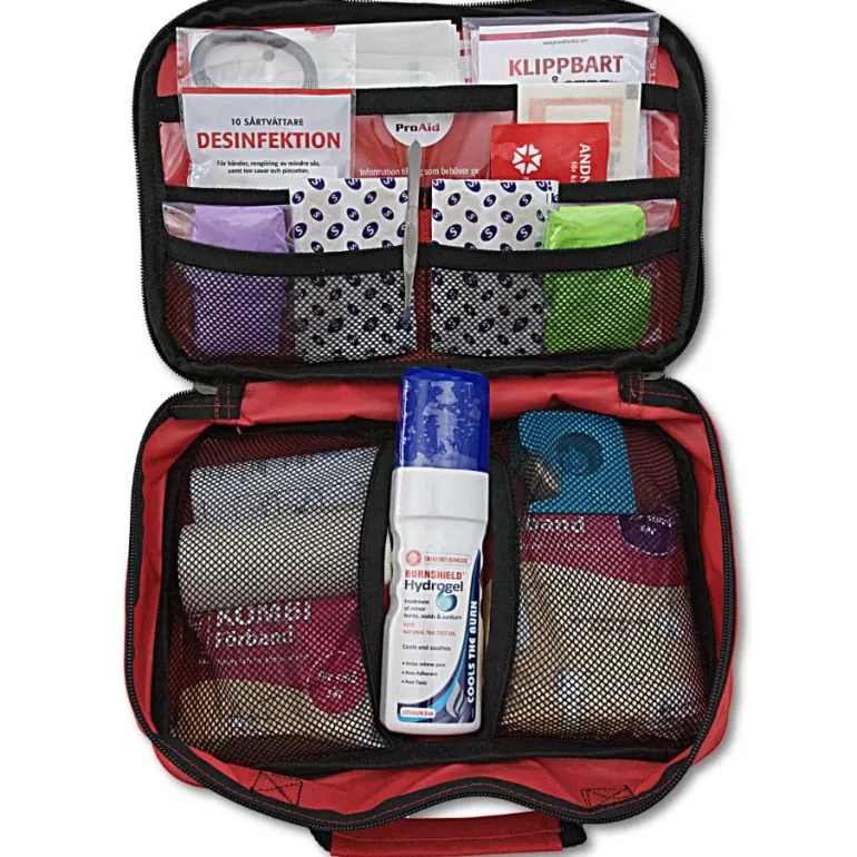 Ensiapulaukku, joka soveltuu työympäristöön, jossa on tiettyjä riskejä, kuten tulitöihin, rakentamiseen, asentamiseen ja teollisuutteen. Laukku sisältää sidetarvikkeita useimpiin akuutteihin vammoihin, kuten haavoihin, palovammoihin ja silmävammoihin.