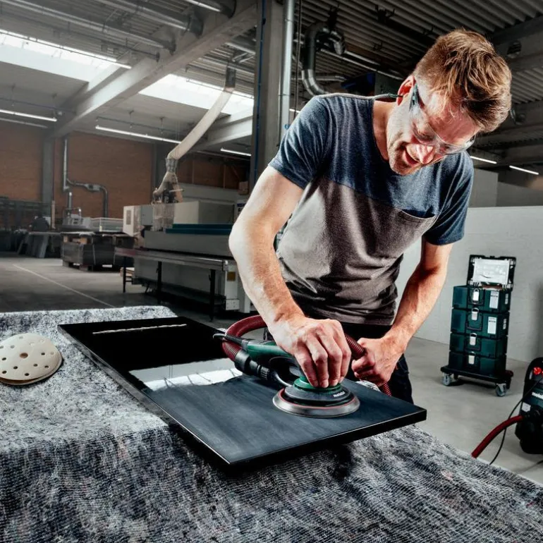 Metabo SXE 150-2.5 BL on erittäin kevyt ja litteänmallinen epäkeskohiomakone, jonka symmetrinen rakenne helpottaa puolenvaihtoa tai molemmilla käsillä käyttöä. Hiomakoneen tukilaikan halkaisija on 150 mm ja kierrosnopeus on 4 000–10 000 kierr./min.