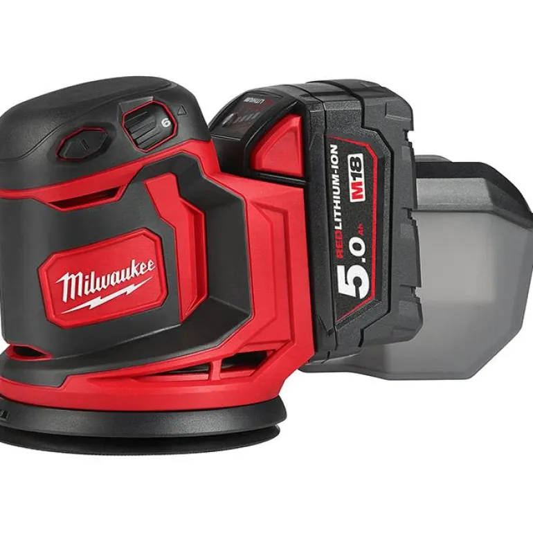 Milwaukee M18 BOS125-502B 18 V epäkeskohiomakone tuottaa 14 000– 20 000 hiontaa minuutissa. Hiomakoneessa on 125 mm hiontalevy ja imuadapteri.